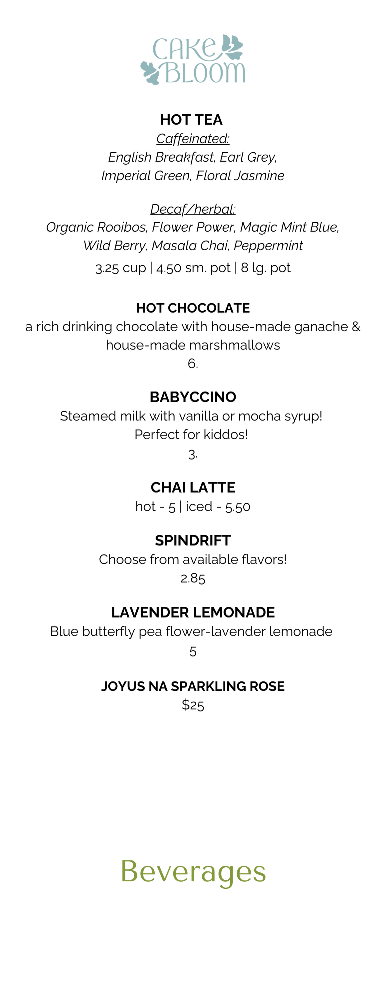 cup - 3.25 | small pot - 4.50 | large pot - 8.